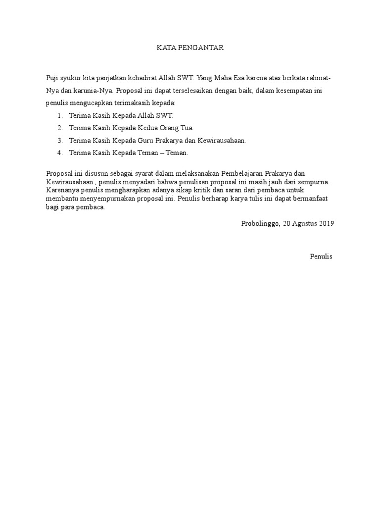 Kritik dan saran yang bersifat membangun sangat kami harapkan bagi para pembaca. Berhubung banyak yang request kata pengantar untuk proposal yang baik dan. Contoh dari proposal ini seperti proposal pendirian usaha kesimpulan. Kesimpulan dan saran tersebut, biasanya berada di bagian akhir dalam setiap makalah, yaitu pada bagian penutup. Saran umumnya menulis permintaan kepada pihak terkait.